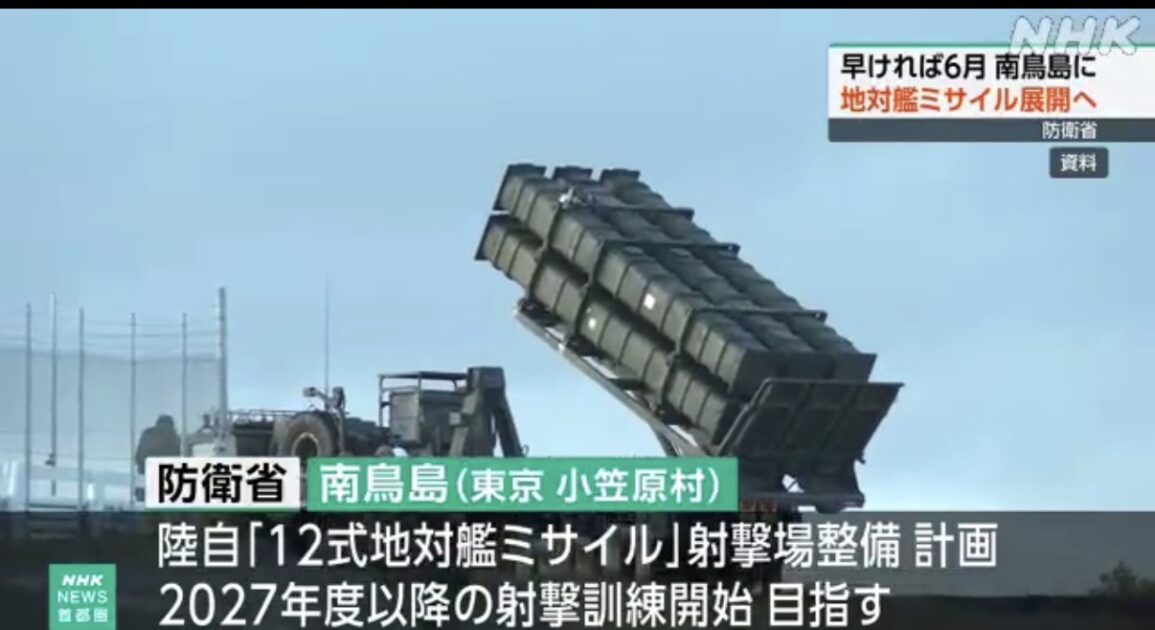 防衛省や関係者によりますと、2027年度以降の射撃訓練開始を目指していて、これに先立ち、早ければことし6月に「12式地対艦ミサイル」を南鳥島に初めて展開するということです。