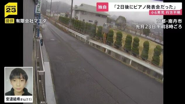 行方不明になっているのは、京都府南丹市立園部小学校の小学6年・安達結希さん(11)。
