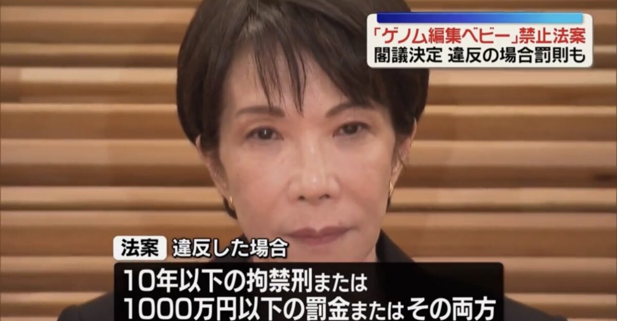 (動画)政府は10日、ゲノム編集されたヒトの受精卵を人や動物の子宮に戻すことを、罰則付きで禁止する法案を閣議決定しました。