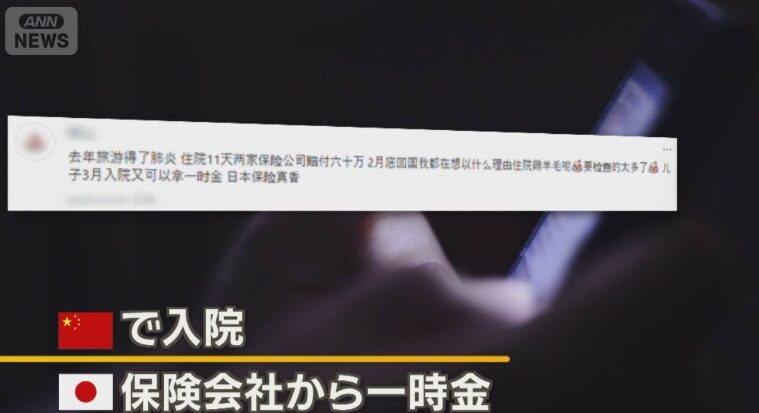 中国で入院して、日本の保険会社から一時金を受け取ったという投稿。先月末、朝日新聞が1面で報じたのは…「中国で入院 保険金請求急増」です。