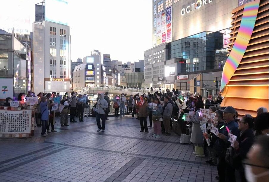 当日、開始時刻の18時は閑散としていた。だが、その後は人が増え、ペンライトから放たれる明かりも大きくなり、徐々に盛り上がりを見せていった。その一方で、冷ややかな視線をデモ参加者に向けて通り過ぎる人も一定数おり、なかには掛け声に合わせて突飛な動きをして「内輪ウケ」を狙う若者の姿も見られた。
