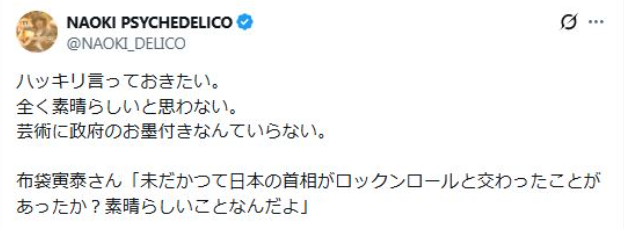 【音楽】52歳ミュージシャン「芸術に政府のお墨付きなんていらない」布袋寅泰の高市首相に関する投稿に“NO”
