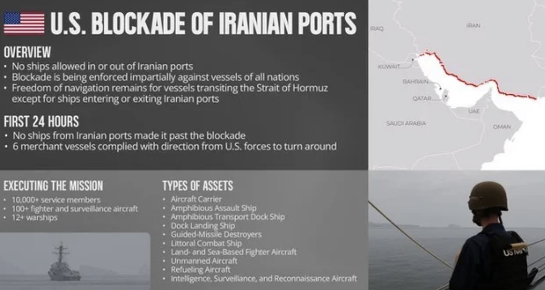 アメリカ中央軍は、封鎖措置には「1万人以上のアメリカ軍兵士に加え、十数隻の軍艦と数十機の航空機が任務を遂行している」と説明しています。