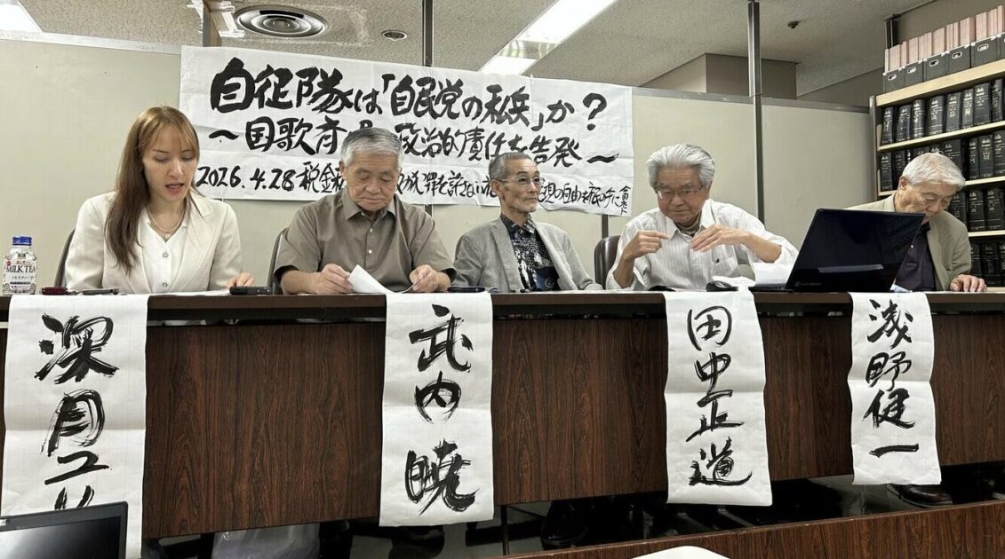 こうしたなか、市民団体がきょう、都内で記者会見を開き、自民党の党大会での国歌斉唱は政治的な行為を制限する自衛隊法に違反するとして、陸上自衛隊員ら4人を東京地検に刑事告発したことを明らかにしました。