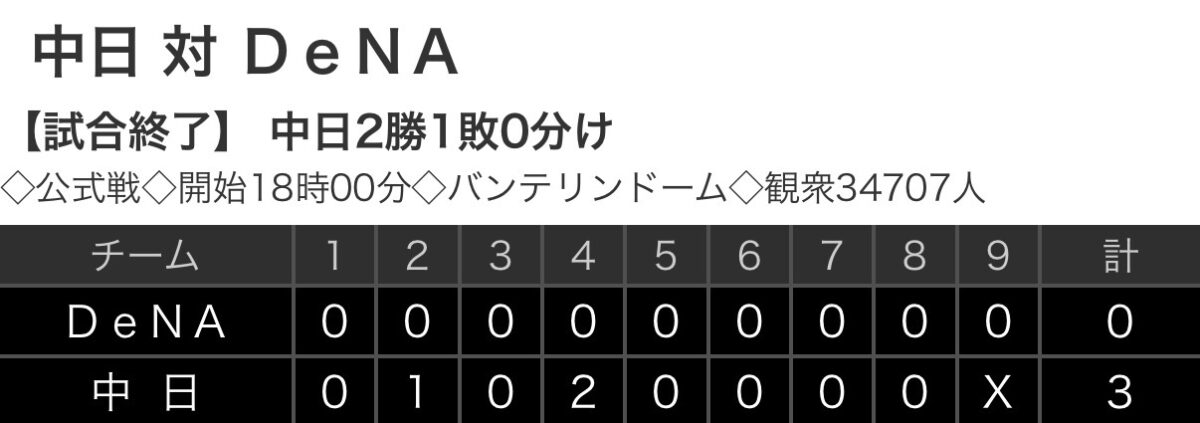 DeNA  0 0 0  0 0 0  0 0 0 |0