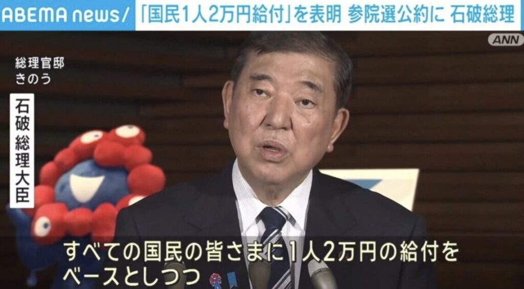 1: タイガースープレックス(秋田県) [US] 2025/06/14(土) 20:33:11.21 ID:VdxdciXe0● BE:194767121-PLT(13001) sssp://img.5ch.net/ico/nida.gif 石破総理大臣は、夏の参議院選挙に向けた公約で物価高対策として、すべての国民に一律に2万円を給付し、 こ... -