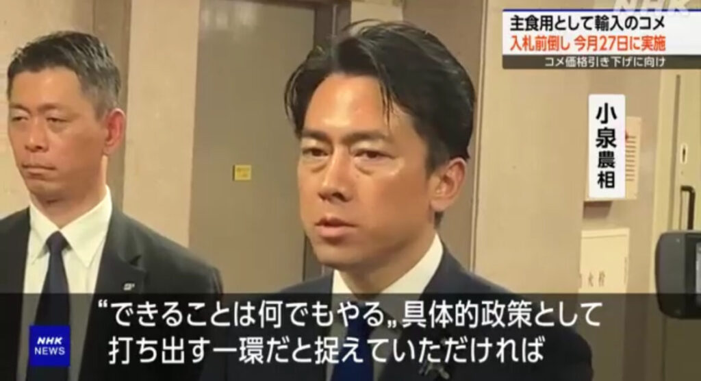 【コメ】主食用の輸入米入札を前倒し 今月中に実施へ 3万トン 農水省……小泉農相 “…毎月入札を実施したい”
