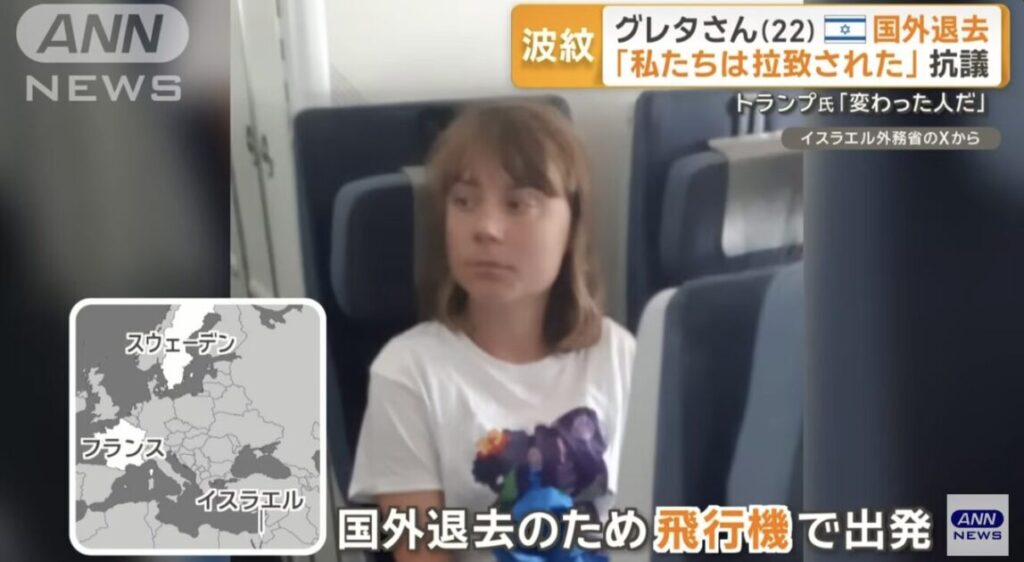 1: ボ ラギノール(福島県) [US] 2025/06/11(水) 10:49:36.64 ID:GYPIloIj0● BE:567637504-PLT(23994) sssp://img.5ch.net/ico/si2.gif 支援物資を届けるために小船でガザ地区へ向かったスウェーデンの環境活動家、グレタ・トゥーンベリさん(22)がイスラ... -