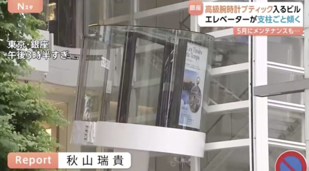 【東京】銀座の「スウォッチグループ」ビルでエレベーター停止 支柱ごと傾く 設置会社「5月に一度メンテナンス」 警視庁など原因調べる