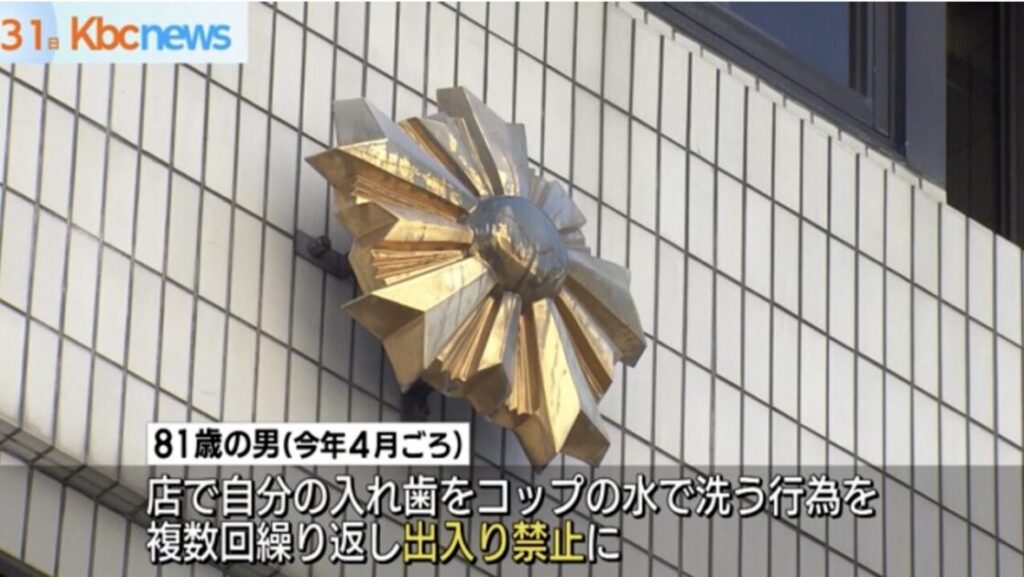 1: 煮卵 ★ 2025/05/31(土) 15:40:35.86 ID:Uw3hlxRX9 入れ歯をコップで洗う行為を繰り返し、出入り禁止になった飲食店に再び出向き、店の人から帰るよう言われたのに従わなかったということです。福岡市の81歳の男が建造物侵入の疑いで現行犯逮捕されま... -