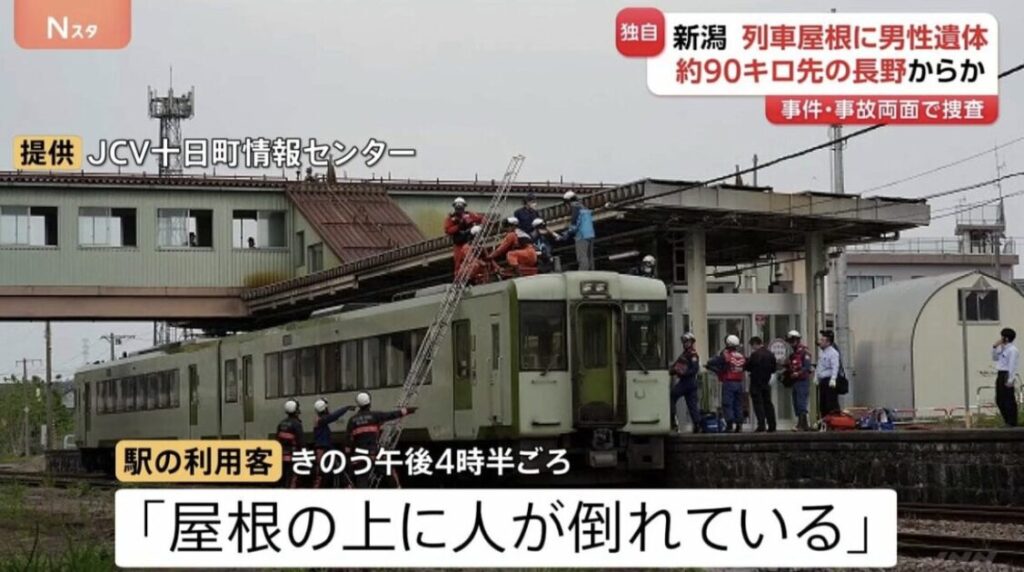 「屋根の上に人が倒れている」列車屋根に遺体 長野から新潟へ90キロ移動か 警察 事件と事故の両面で捜査