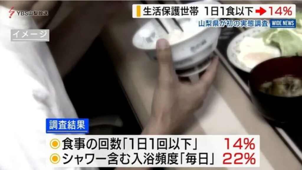【山梨】生活保護世帯「食事が1日1回以下」は14%「毎日入浴」は22% 初の実態調査