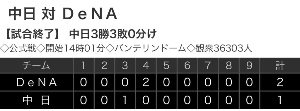 【野球】セ・リーグ D 1-2 DB [5/5] DeNAケイ8回1失点、木下逆転タイムリー 中日3連敗ドラ1金丸6回2失点