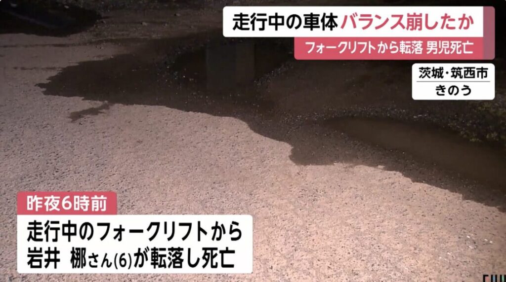 【茨城】車体がバランス崩して転落…フォークリフトから小1男児が転落し死亡 父親(29)逮捕…フォーク部分に子ども3人乗せる 筑西市