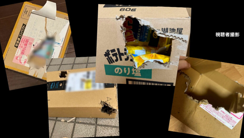 【警戒】「商品が全く入っていない…」全国で「置き配」に穴開けられる被害相次ぐ ポテトチップス食い荒らした跡も