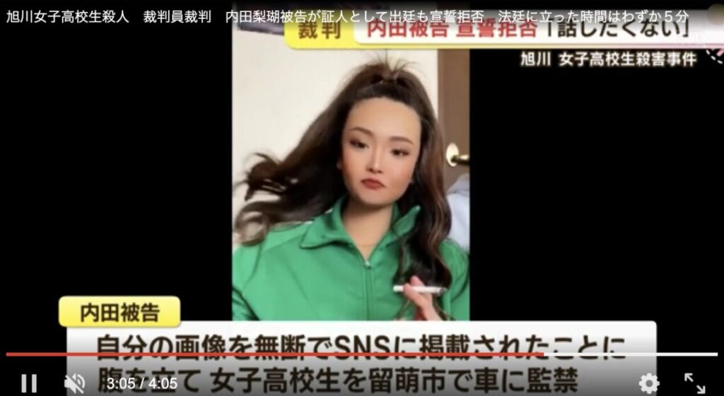 【旭川女子高校生殺人】裁判員裁判 内田梨瑚被告が証人として出廷も宣誓拒否