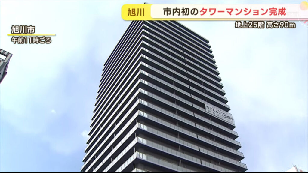 1: おっさん友の会 ★ 2025/03/01(土) 13:26:29.95 ID:El9KVtO/9 旭川市内の中心部、買物公園に面した場所にそびえ立つタワーマンション。 大和ハウス工業が手がけた「プレミスト旭川ザ・タワー」は高さ90m、地上25階・地下1階建てで、旭川市で最も高... -