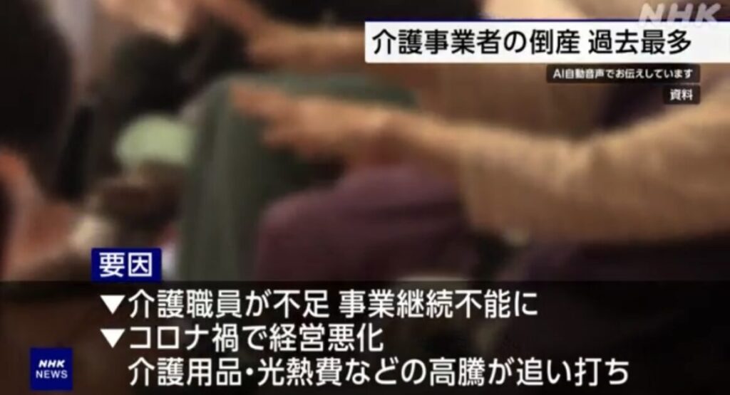 【経済】介護事業者の倒産 去年170件余 過去最多に 物価高騰など影響か