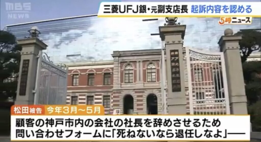 【兵庫】「死ねないなら、退任しなよ」三菱UFJ銀行の元副支店長 顧客の会社社長を辞めさせるためメッセージ…起訴内容認める