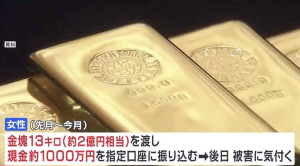 1: ちょる ★ 2024/12/24(火) 11:41:45.75 ID:??? TID:choru 仙台市内の高齢の女性が警察官を装った男から「事件に関与している」などと言われ、金塊2億円相当と現金およそ1000万円をだまし取られました。先月18日、仙台市に住む無職の70代女性に警察官を装... -