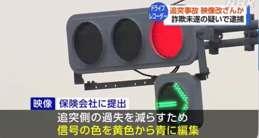 ドラレコ信号機の色改ざん 保険金詐欺未遂容疑で男逮捕