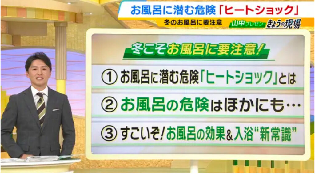 1: 豚トロ ★ 2024/12/12(木) 15:10:51.40 ID:??? TID:toro 寒い季節、欠かせないという人も多い「お風呂」。しかし入浴方法を誤るとヒートショックなどの危険につながるおそれもあります。では正しい入浴方法とは?お風呂や温泉に関する医学的研究の第一人... -