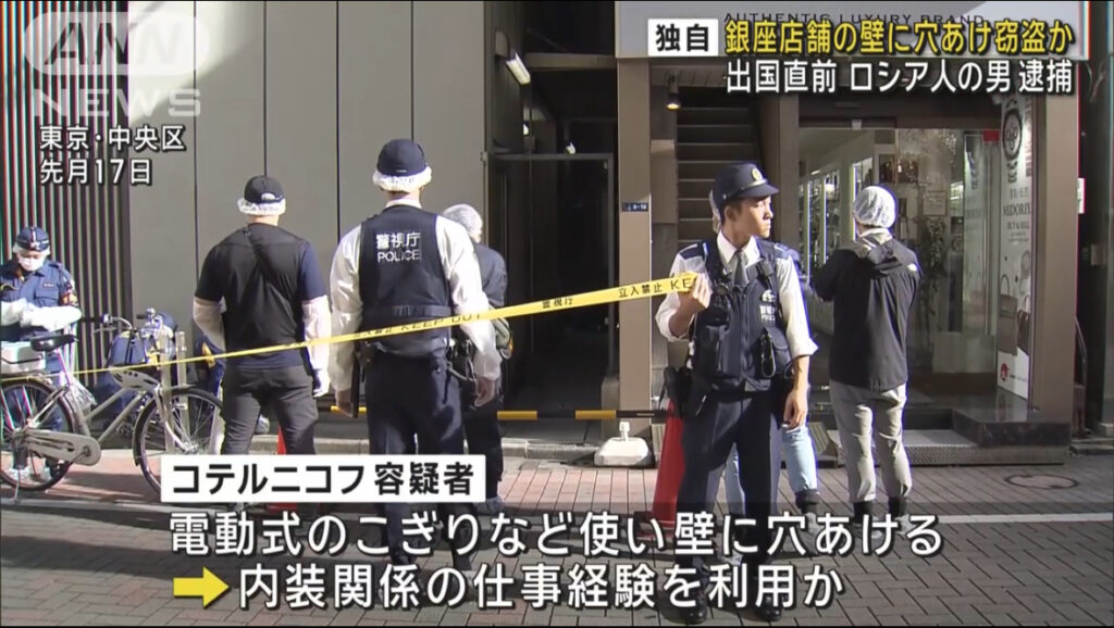 【警視庁】銀座質店の外壁破壊し600万円相当盗んだか 出国直前…ロシア人の男を羽田空港で確保し逮捕「観光目的で来た」