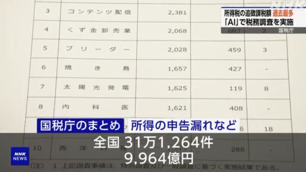 【国税局】税務調査にAIを活用した結果 所得税の追徴課税1398億円余 過去最多に