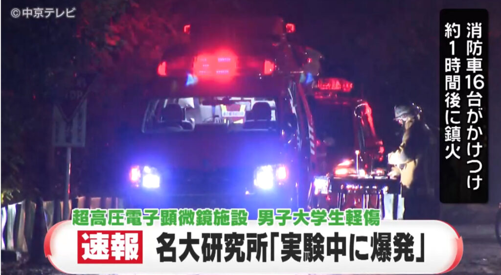 名古屋大学の大学生、夜中の3時に研究所で実験してたら爆発し負傷