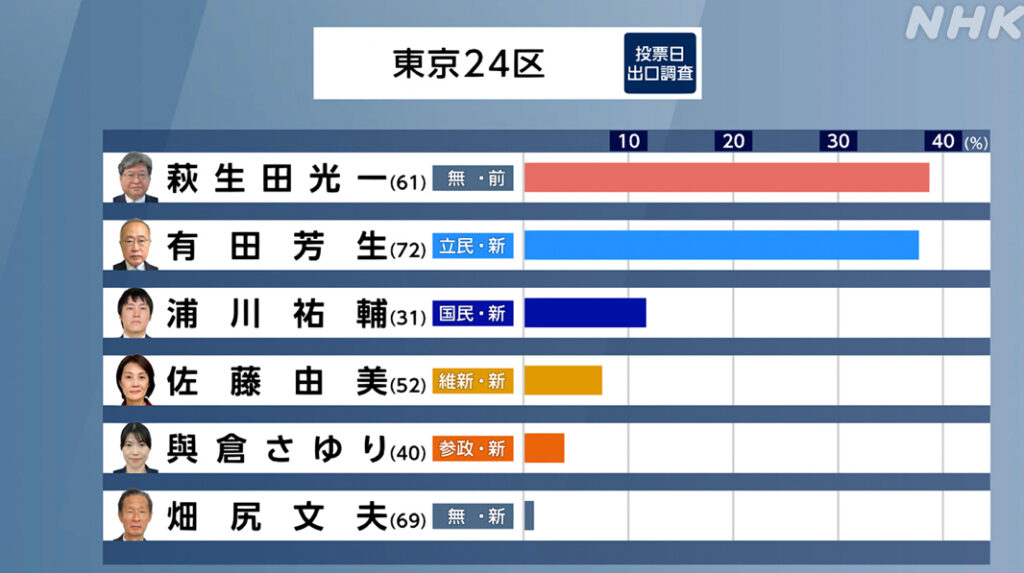 【衆議院選挙】東京24区 萩生田光一氏 有田芳生氏が競り合う 最新の開票状況は