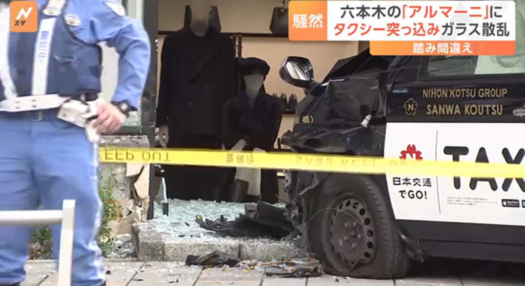 【東京・港区】「アルマーニ」六本木ヒルズ店にタクシーが突っ込む ショーウィンドウ割れるもけが人なし「アクセルとブレーキを踏み間違えた」