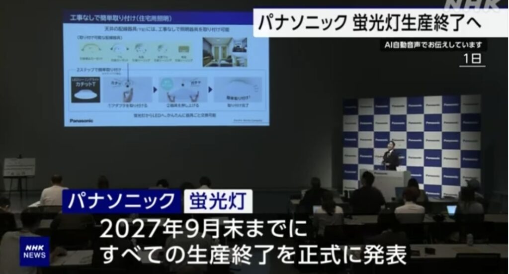パナソニック 蛍光灯の生産 2027年9月末までに終了と発表