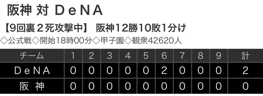 【野球】セ・リーグ T 0-2 DB [9/30] DeNA宮﨑14号決勝2ランHR、8回まで継投でノーノー 阪神完封負け