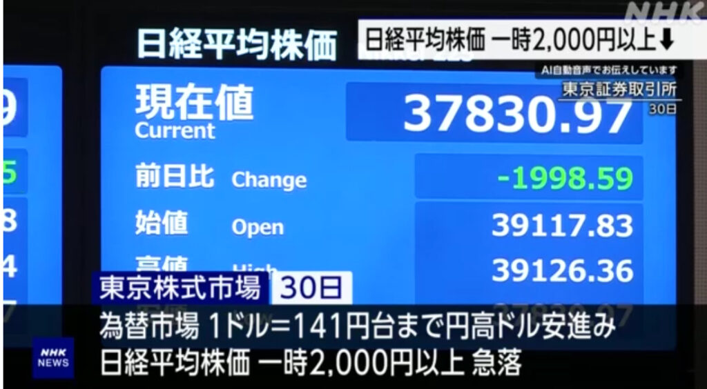 1: パンナ・コッタ ★ 2024/09/30(月) 21:27:10.87 ID:qdRDOSxE9 30日の東京株式市場は、自民党の石破新総裁の経済政策に対する警戒感などから全面安の展開となり、日経平均株価は一時、2000円以上急落しました。終値でも1910円の値下がりとなり、過去5番目... -