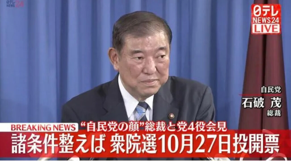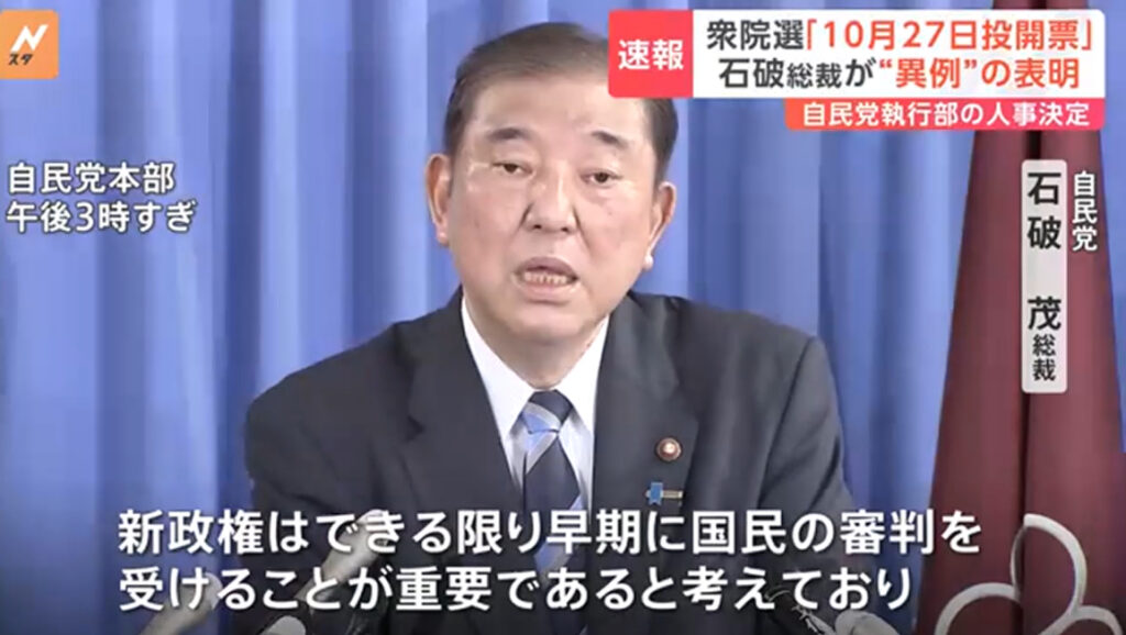 【自民党】石破総裁「来月27日に解散総選挙」表明 「全国選管の準備の観点から本日表明」