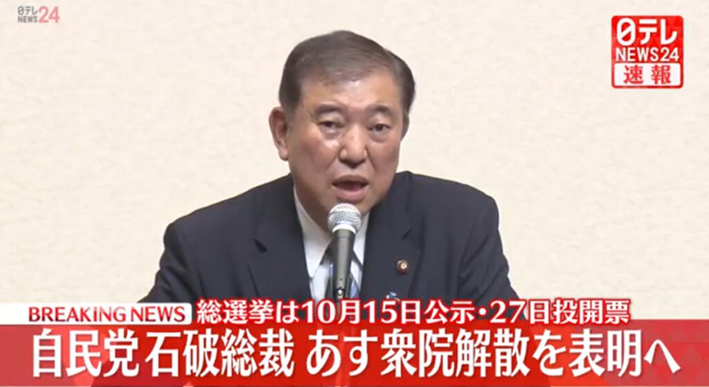 自民党石破総裁 あす衆議院解散を表明へ