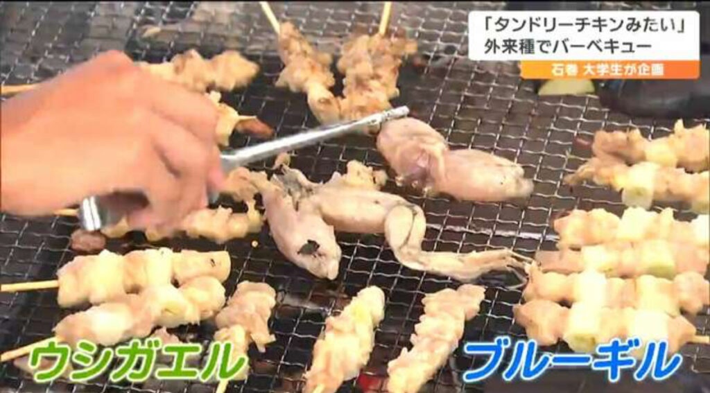 【宮城・石巻市】「タンドリーチキンみたい」ミドリガメやウシガエル…外来種を食すバーベキュー大会