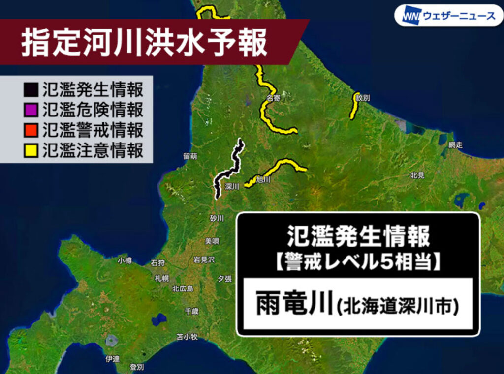 【北海道】雨竜川で氾濫が発生 警戒レベル5相当の氾濫発生情報発表