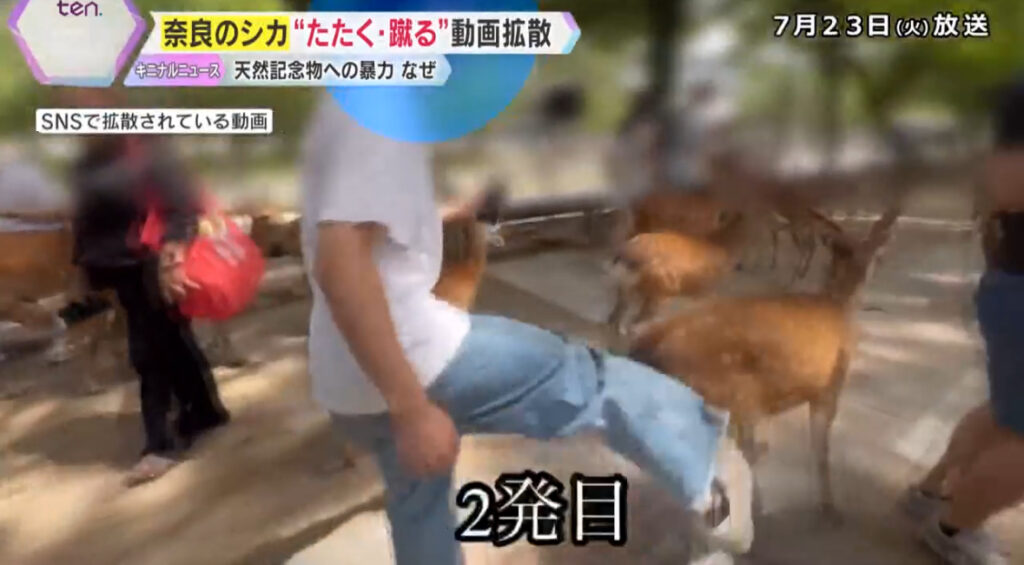 “神の使い”を殴る蹴る…奈良公園のシカに暴力振るう動画がSNSで拡散