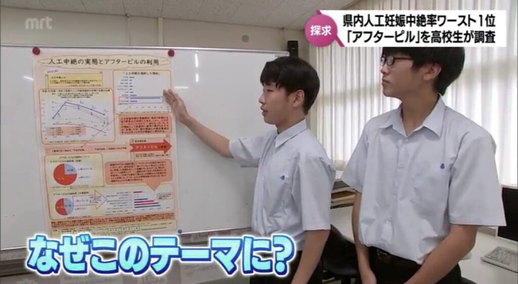 1: 影のたけし軍団 ★ 2024/07/20(土) 15:07:15.93 ID:??? TID:gundan 宮崎県は、2021年度まで人工妊娠中絶率が4年連続ワースト1位となっています。 こうした中、日南市の男子高校生が人工妊娠中絶と緊急避妊薬「アフターピル」をテーマにしたポスターを作... -