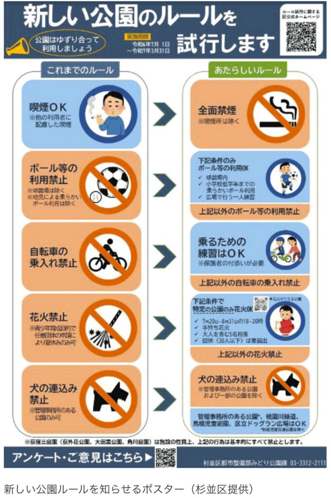 【東京】公園は原則「禁煙」に 杉並区がアンケートを基に新ルール 花火、ボール遊び→条件付きでOK!