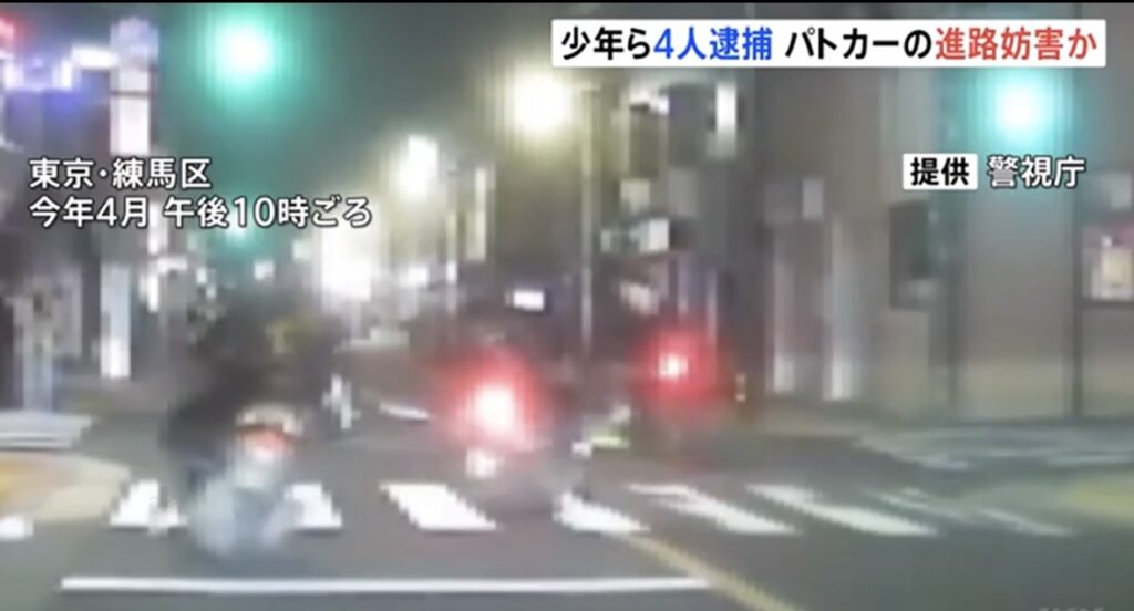 1: @シャチ ★ 警備員[Lv.4] 2024/07/18(木) 17:37:11.28 ID:WllTh7H89 「練馬喧嘩会」を名乗る自称・暴走族グループのメンバーがパトカーの進路を妨げるなどの危険な暴走行為を繰り返したとして、警視庁は16歳の少年ら4人を逮捕し、1人を書類送検しました... -