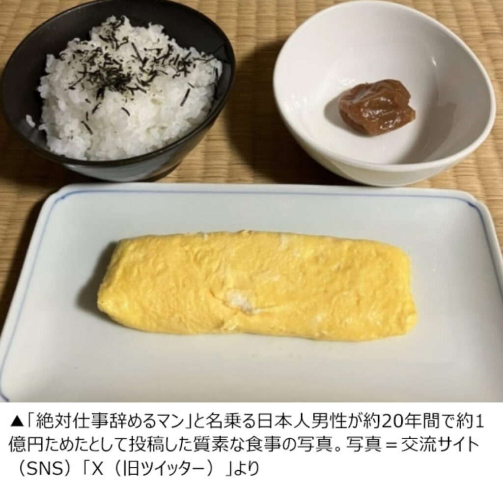 1: @仮面ウニダー ★ 2024/07/17(水) 12:36:33.19 ID:SHV8WfGy 食費を節約するなどして約1億円ためたと話題になった40代の日本人男性がこのほど、節約人生を後悔していると吐露し、 注目を集めている。 【Photo】「絶対仕事辞めるマン」が投稿した質素な食...