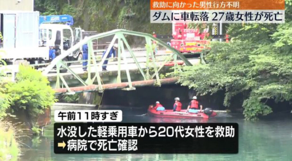 長野県木曽町の黒川ダムに軽乗用車が転落 運転していた20代の専門学校生の女性が死亡 また救助のためダムに入った男性が行方不明