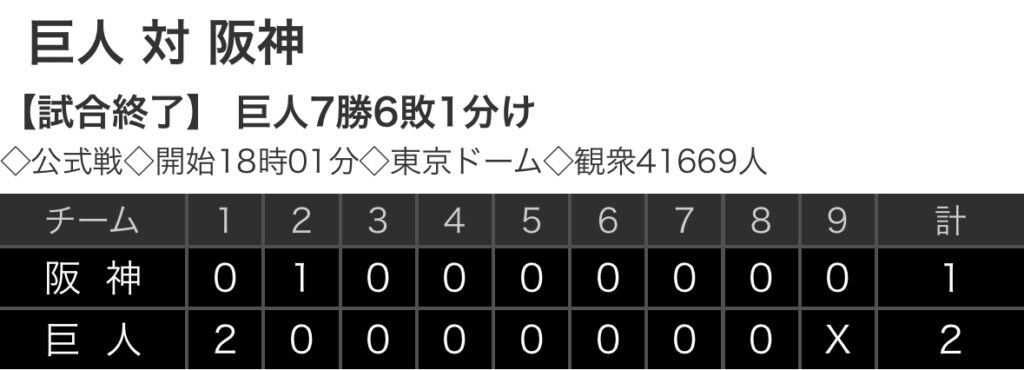 1: 鉄チーズ烏 ★ 2024/07/16(火) 20:57:01.69 ID:7eclNApE9 阪神 0 1 0 0 0 0 0 0 0 |1 巨人 2 0 0 0 0 0 0 0 x |2 【バッテリー】 (阪)才木 - 梅野 (巨)山﨑伊、バルドナード 、大勢- 岸田 【本塁打】 (阪) (... -