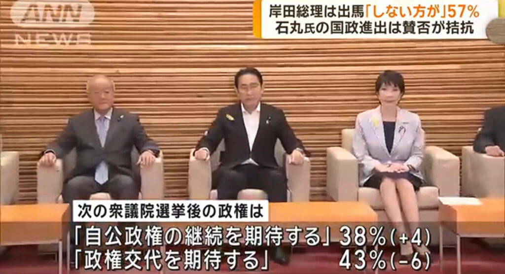 自民党総裁選「岸田出馬しない方がいい」57%…「政権交代を期待する」43%…「岸田内閣支持」20.2%