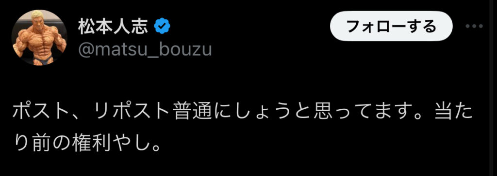 松本人志「ポスト、リポスト普通にしょうと思ってます。当たり前の権利やし」
