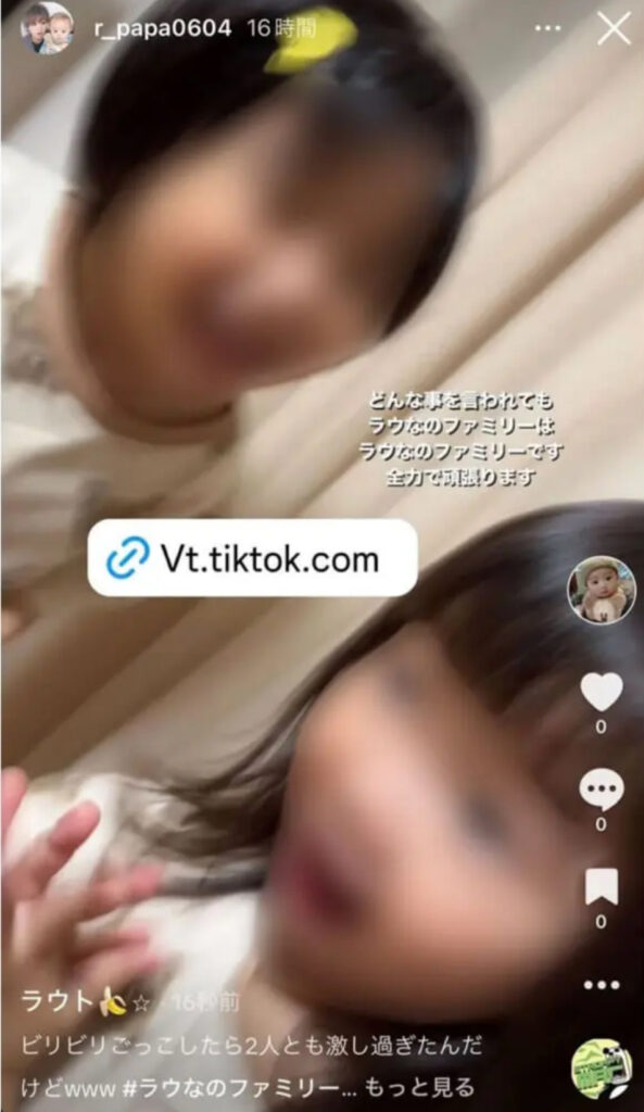 1: ギャラガー ★ 2024/07/12(金) 20:31:11.39 ID:??? TID:gallagher 三人の子供と夫婦の日常を動画で伝える、チャンネル登録者数約5.8万人のYouTuber・ラウなのファミリー。炎上の発端は5月24日にアップした動画だった。2歳の長女が炎天下の車内に閉じ込め...
