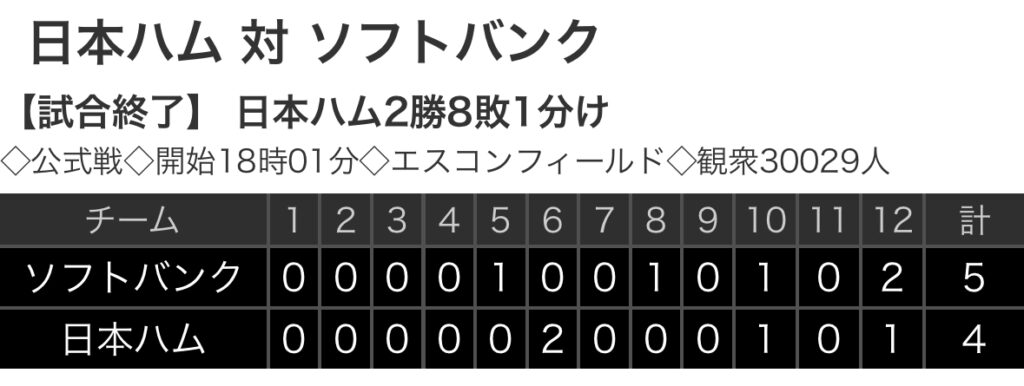 【野球】パ・リーグ F 4-5 H [7/12] ホークス延長12回に近藤が勝ち越し打 日本ハム対ホークス戦7連敗