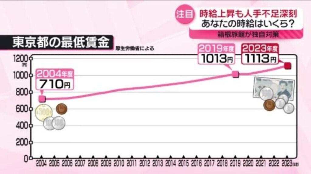 1: 影のたけし軍団 ★ 2024/07/12(金) 15:46:22.75 ID:??? TID:gundan アルバイトやパートの時給が上がる一方で、人手不足が深刻です。そうした中、箱根の旅館ではちょっとユニークな独自の“報酬制度”を導入しました。 みなさんのアルバイトの時給、いくら...